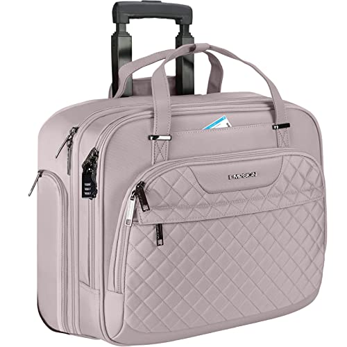 EMPSIGN Rullande laptopväska kvinnor med hjul, rullande portfölj för kvinnor passar upp till 15,6 tums bärbar datorportfölj på hjul, vattenavvisande datorväska med RFID-fickor, Quiltad dammig rosa,