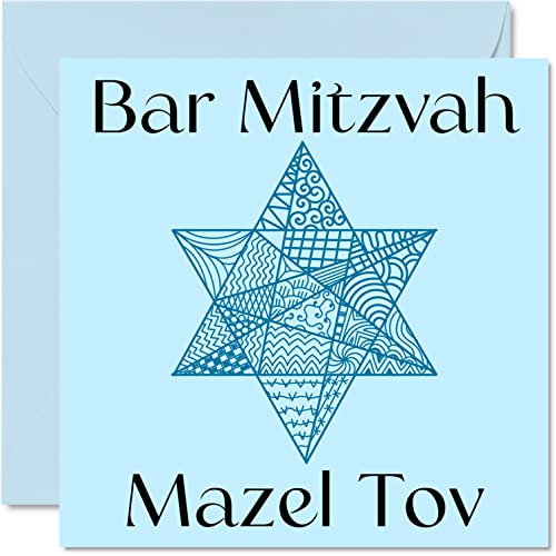 Bar Mitzvah-kort för pojkar och honom – Zentangle Davidsstjärna – Mazel Tov, lycka till grattis-gåvor, bar Mitzva-gåvor för pojkar, 145 mm x 145 mm judiska gåvor gratulationskort fladdermus Mitzvah-kort
