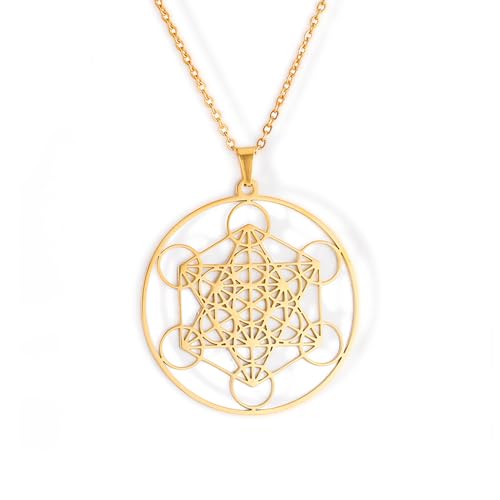 Amaxer Metatrons kub-halsband för kvinnor, Davidsstjärna, ärkeängel, Metatron-skydd, uttryck, ihålig kedja i rostfritt stål, hänge, berlock, halsband för kvinnor & flickor, Medium, Metall
