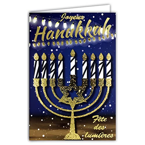 68-8006 Happy Hanukkah Hanukkah Hanukkah Hannukkah Party Judendom ljus 9-trådig ljus Davidsstjärna glänsande guld girlang 4-sidig snurrar vitt kuvert format 17,5 x 12 cm AFIE