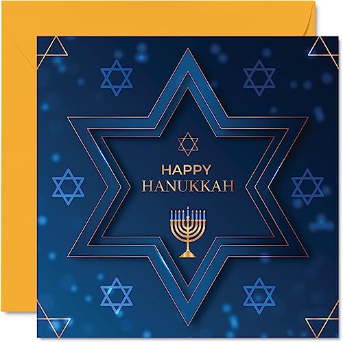 Lyckligt Hanukkah-kort för pojkar och honom – Zentangle Davidsstjärna – Mazel Tov, lycka till grattis-present, ljusfestival gåvor för pojkar, 145 mm x 145 mm judiska gåvor gratulationskort