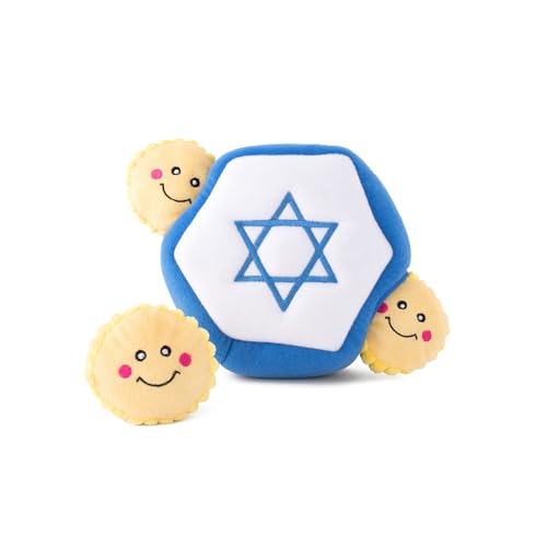 ZippyPaws Holiday Burrow Hundleksaker – hund- och valpleksaker, färgglada gnissande leksaker och plyschpussel, Davidsstjärna
