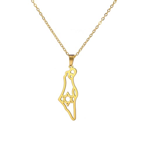 Amaxer Davidsstjärna halsband Israel Palestina karta rostfritt stål smycken gåvor hänge halsband för kvinnor män, L50, Rostfritt stål