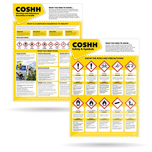 COSHH Säkerhet & symboler | Hälso- och säkerhetsaffischer | Laminerat glansigt papper 420 mm x 594 mm (A2) | Hälso- och säkerhetskontor och kommersiella väggdiagram | Utbildning av Daydream Education