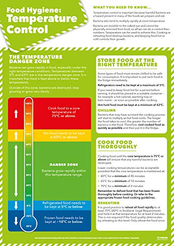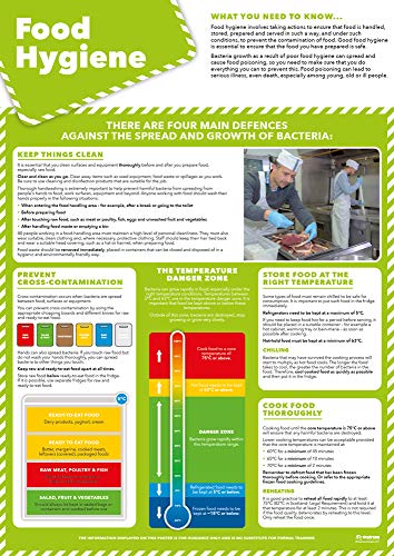 Livsmedelshygien | Hälso- och säkerhetsaffischer | Glansigt laminerat papper 420 mm x 594 mm (A2) | Väggbilder för hälso- och säkerhetskontor | Pedagogiska tabeller av Daydream Education