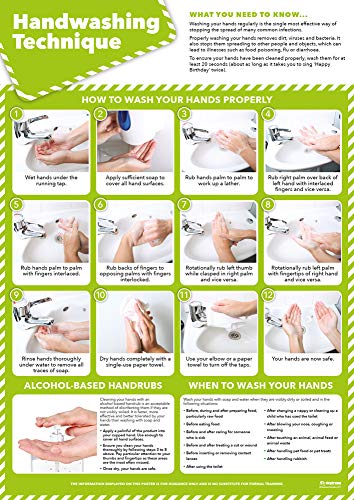 Handtvättsteknik | Hälso- och säkerhetsaffischer | Laminerat glansigt papper 420 mm x 594 mm (A2) | Hälso- och säkerhetskontor och kommersiella väggdiagram | utbildningstabell från Daydream Education