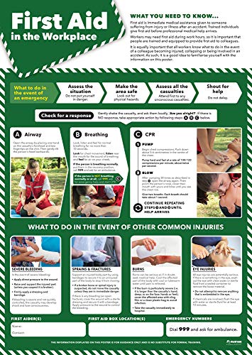 Daydream Education arbetsaffisch för första hjälpen, laminerat högglansigt papper, 420 mm x 594 mm (A2), för hälsa och säkerhet, kontor och företag
