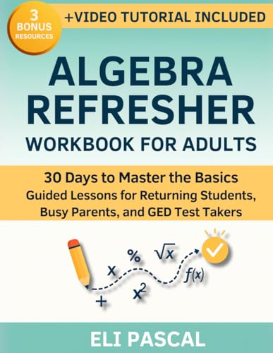 Algebra Refresher Workbook for Adults: Master Algebra in 30 Days — Step-by-Step Lessons to Rebuild Skills and Confidence for Returning Students, Busy Parents, and GED Test Takers. Math Anxiety? Gone.