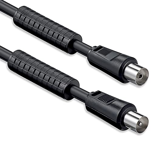 1aTTack.de Antennkabel med ferrit, mantelströmfilter, 1,5 meter, 2 x skärmad koaxkontakt > koaxuttag (helt skärmad) koax svart ST-Ku med FE 85 db