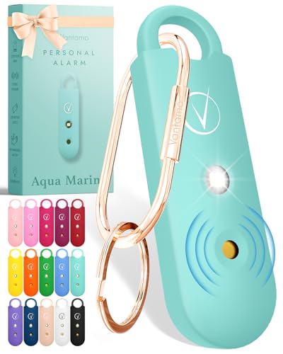 Vantamo Personliga larm för kvinnor med strobo-LED-ljus, extra hög 130 dB självförsvarsnyckel med 2 dynamiker, unikt paniklarm med nyckelring och nyckelring för väska eller ryggsäck och meddelande om