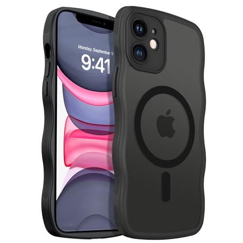 BENTOBEN Magnetic for iPhone 11 Phone Case,iPhone 11 Case [Compatible with Mag Safe] Curly Wavy Magnetic Translucent Matte Slim Shockproof Anti-Fingerprint Protective Cover for iPhone 11 6.1’’ Black