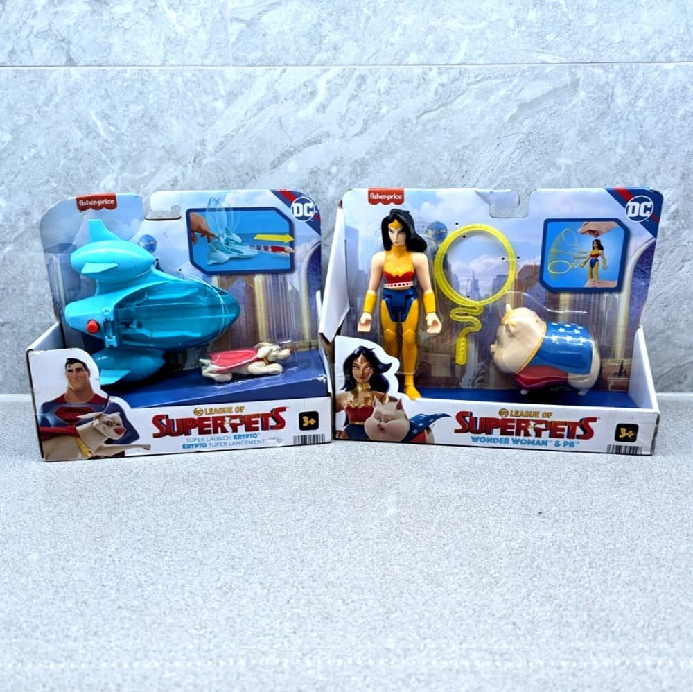 OFFICIAL FIHSER PRICE DC LEAGUE OF SUPERPETS ACTION FIGURES DOLL AND PETS