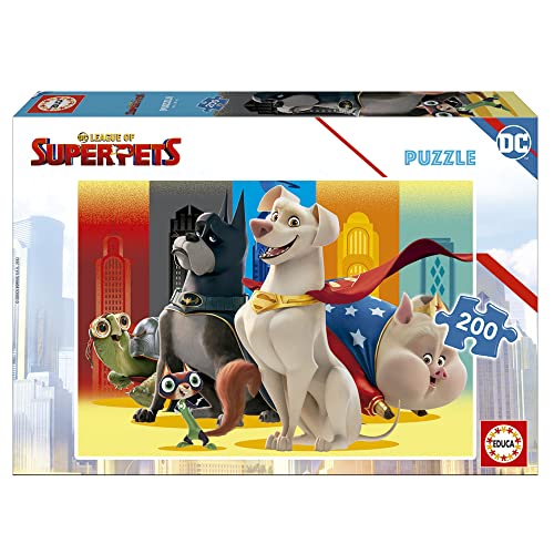 Educa - 200 pusselbitar för barn | DC League of Super-Pets. Mått: 40 x 28 cm, rekommenderas för barn från 6 år och äldre (19485)