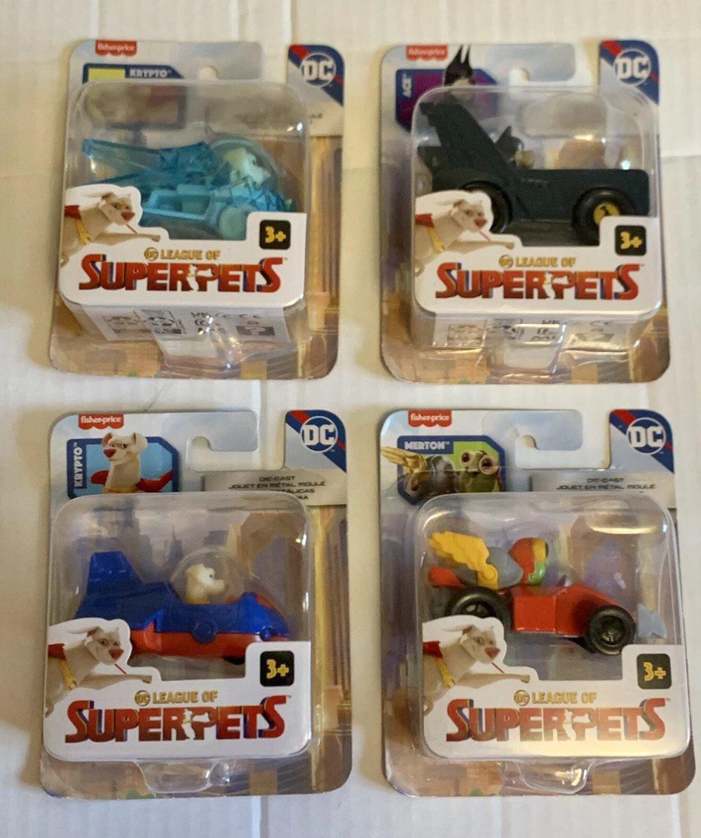 DC 4 League of Superpets Die Cast Vehicles -Krypto, Merton & Ace By Fisher Price
