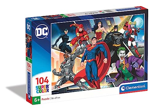 Clementoni - Jigsaw Superheroes DC Comics 104PCS Supercolor Comics-104 Stycken - Tillverkad i Italien, Barn 6 år, Tecknat, Superhjältar, Flerfärgad, Medium, 25722