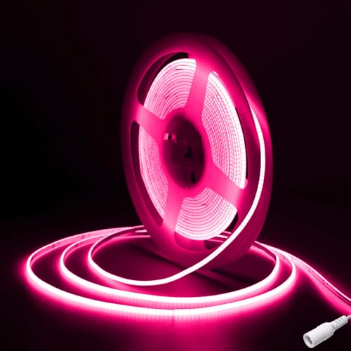 COB LED-remsa 5m,Fosingut DC12V Rosa LED Strip 2.7mm,CRI90+ 480LED/m Remsor ljuskedja,Flexibel Självhäftande repljus neonljus för TV-bakgrundsbelysning,Kök,Sovrum,DIY Dekor(Endast Strip)