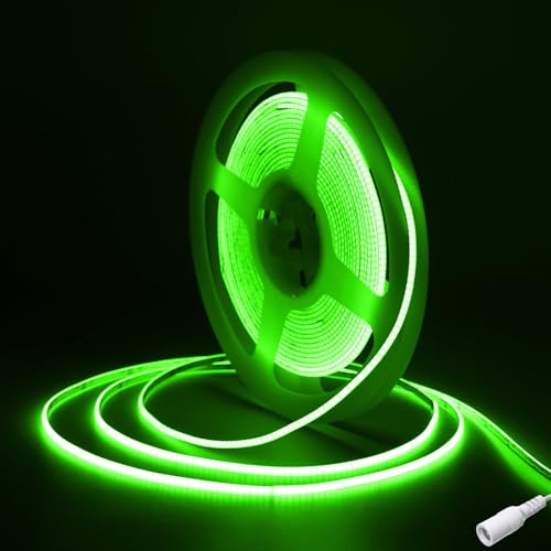 COB LED-remsa 5m,Fosingut DC12V Grön LED Strip 2.7mm,CRI90+ 480LED/m Remsor ljuskedja,Flexibel Självhäftande repljus neonljus för TV-bakgrundsbelysning,Kök,Sovrum,DIY Dekor(Endast Strip)
