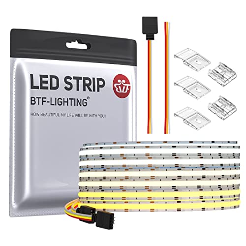 BTF-LIGHTING Flexibel LED-remsa med hög densitet 5M 640LED/m inställbar 3 000K-6 000K CRI 90+ dimbar LED-ljusremsa deformerbar för heminredning under möbler, sovrum, kök, DC12V