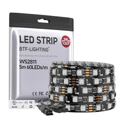 BTF-belysning WS2811 IC adresserbar drömfärg LED-remsa 16,4 fot 60 LED/m 20 pixlar/m 300 LED-lampor 100 pixlar IP30 icke-vattentät svart PCB flexibel DC12V jagande effekt för sovrum skrivbord