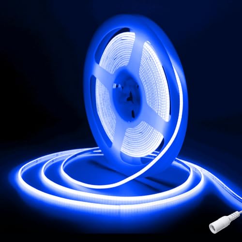 COB LED-remsa 5m,Fosingut DC12V Blå LED Strip 4mm,CRI90+ 480LED/m Remsor ljuskedja,Flexibel Självhäftande repljus neonljus för TV-bakgrundsbelysning,Kök,Sovrum,DIY Dekor(Endast Strip)