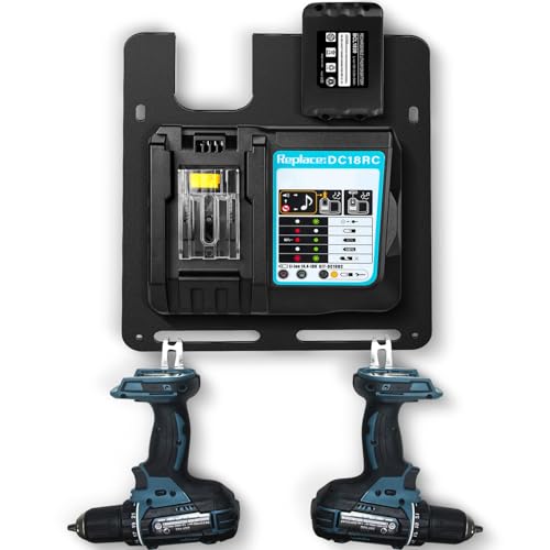 JYiuog Väggfäste för Makita batterier och laddare, starkt stål stabil 2-delad batterihållare och laddare, laddare vägghållare, lämplig för verkstad och garage