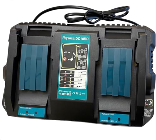 Ersätta för Makita Laddare DC18RD 2-delad 14.4V 18V 4A Dual Snabbladdare DC18RC DC18RA för Makita Maximal 14.4-18 Volt Batteri BL1815 BL1830 BL1840 BL1845 BL1850 BL1415 BL1430 BL1440