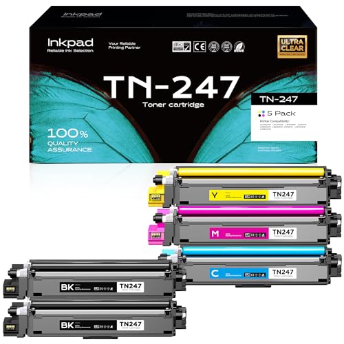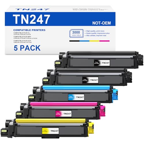 TN243 toner kompatibel med Brother TN-243CMYK toner för Brother MFC L3750CDW L3770CDW MFC-L3750CDW TN 243CMYK TN-247 toner DCP-L3550CDW HL-L3210CW HL-L3230CDW MFC-L3710CW, 5-pack