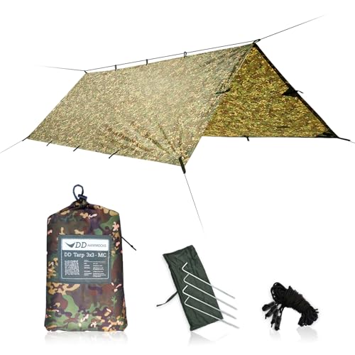 DD Hammocks – DD Tarp 3 x 3 – MC – lätt kamouflagepresenning för hängmatta, camping och solo utomhusäventyr