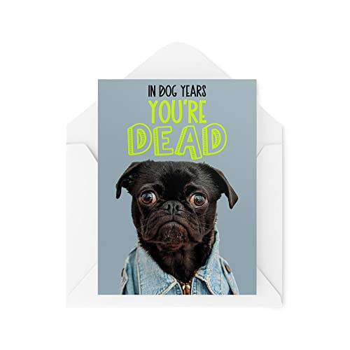 Roliga nya gratulationskort | In Dog Years You're Dead | Födelsedag mops hund gammal förälder morförälder banter bästa vän roligt skämt | CBH1256