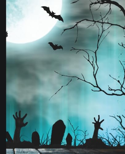 Zombie Graveyard Halloween Notebook | 7.5 x 9.25 in | College Ruled | 120 Pages: Spooky Composition Book with Full Moon, Bats, and Rising Dead Hands — ... Journal for Kids, Teens, and Horror Lovers