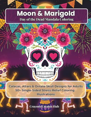 Moon & Marigold Day of the Dead Mandala Coloring: Calacas, Altars & Ornate Skull Designs for Adults 50+ Single-Sided Stress-Relief Coloring Illustrations