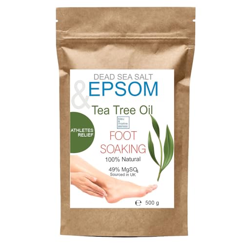 Tea Tree Epsom & Dead Sea Salt Antigungal Antibakteria Fotblötläggning 500 g Återförslutningsbar stående stående ficka Avslappnande fot Bad ?Behandling av svampinfektioner exfoliering smärtlindring ingrown nagel