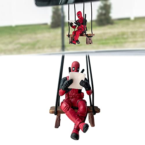 FAINCA Hänge Prydnad, Söt Deadpool Oscilerande Ornament, Bil Retrovisor Mirror Dekoration, Car Decor Charm Pendant, SY-SSGJ-1, Kombination Av Svart Och Röd
