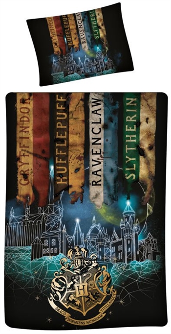 Harry Potter sengetøy av flanell - 140x200 cm - The deathly hallows sengesæt - 2 i 1 design - Dynebetræk i 100% bomuld