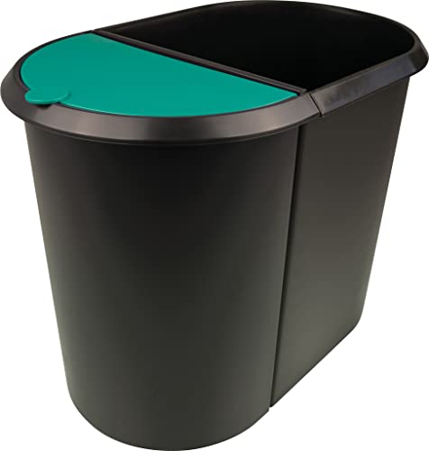 Helit System-papperskorg "the double", 20 + 9 l schwarz/Deckel grün