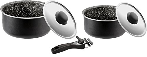 MasterPRO Gastro Reeco | 8-teiliges Set | 3 Pfannen von 20, 24 und 28 cm und 16 cm Stielkasserolle mit Deckel | Heatdot |Aluminiumguss Recycled |Antihaftbeschichtung |Für alle Herdarten