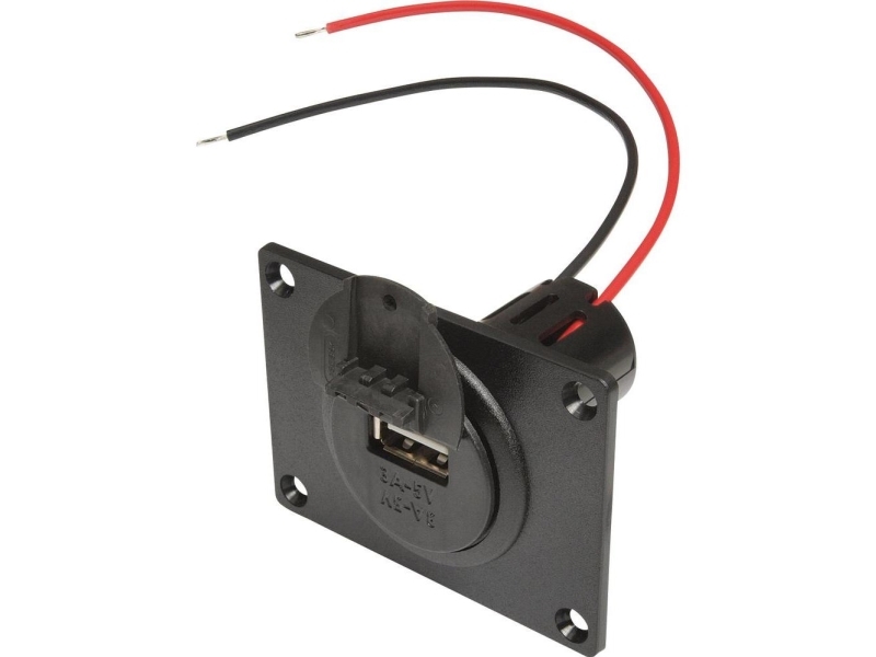 Uttag Infälld Montering, Klämhylsa, Platta, Lock Procar Power Usb Einbausteckdose Ev Mit Montageplatte Und Deckel 12 V Til 5 V, 24 V Til 5 V 3 A Kabeln Är Strippad