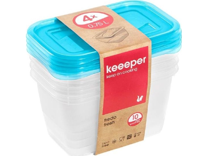 Keeeper Frischhaltedose "Fredo Fresh", 0,75 Liter, Eckig Unterteil: Transparent, Deckel: Blau, Deckel Mit Ecklasche, - 1 Stück (3067363200000)