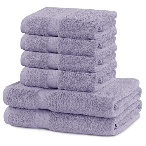 DecoKing Set med 6 bomullskvalitet 525 g/m² 4 handdukar 50 x 100 cm och 2 badhanddukar 70 x 140 cm lila absorberande marinblå