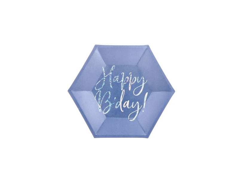 Tallrikar Happy Bday Blå Hexagon