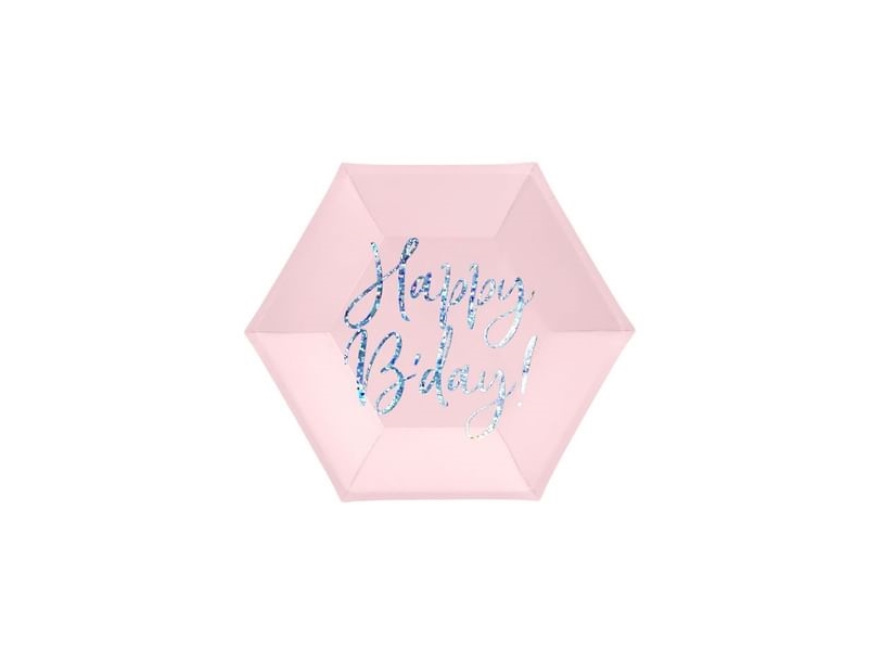 Happy Bday-Tallrikar Rosa Sexkantiga