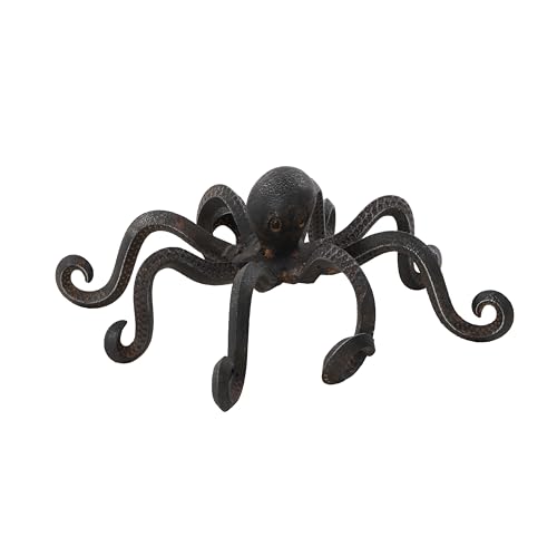 Deco 79 metall bläckfisk dekorativ skulptur heminredning staty med långa tentakler och sugningar detaljer, accentfigur 30,5 cm x 22,88 cm x 10,16 cm, svart