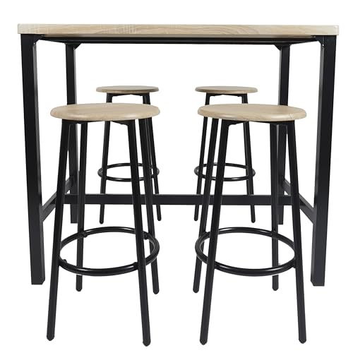 HOME DECO FACTORY Stående ätbord och 4 Loka-pallar, svartbrun, 100x86x60