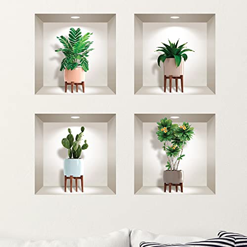 3D självhäftande klistermärken | 3D-dekal skandinaviska växter och vaser - väggklistermärken sovrum - 3D väggklistermärken - vardagsrum - deco - väggklistermärken lumpar ögat | 60 x 60 cm