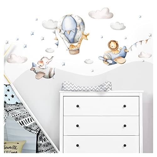 Väggtatuering djur flygplan blå – L – 131 x 60 cm (B x H)