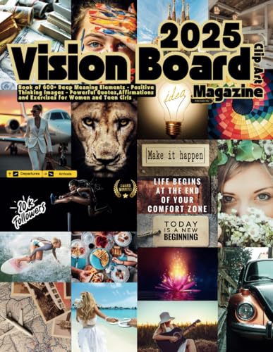 2025 Vision Board Magazine: Clip Art Book of 600+ Deep Meaning Elements - Positive Thinking Images - Powerful Quotes,Affirmations and Exercises for Women and Teen Girls