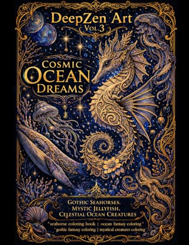 DeepZen Art Vol.3: Cosmic Ocean Dreams A Gothic Fantasy Ocean Coloring Book for Adults Featuring Mystic Jellyfish, Leviathans and Sea Creatures: A ... Cosmic Oceans, and Intricate Fantasy Art