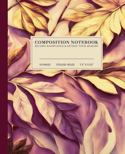 Golden Leaves Composition Notebook | Modern College-Ruled Notebook: Gradient Leaf Design from Golden Yellow to Deep Purple | 110 Pages | 7.5" x 9.25" | Perfect for School, Work, or Personal Use