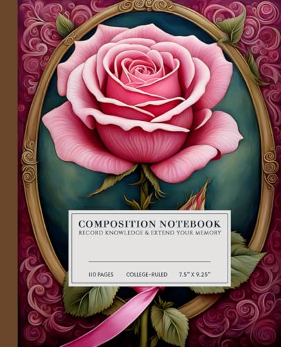 Elegant Rose Composition Notebook | Romantic College-Ruled Notebook: Realistic Pink Rose Framed by Intricate Swirls on Deep Purple Background | 110 ... | Perfect for School, Work, or Personal Use