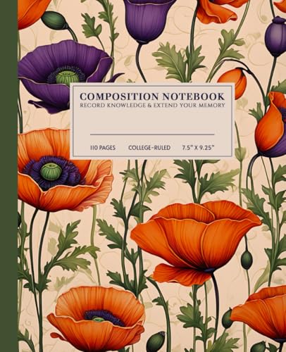 Dramatic Poppy Garden Composition Notebook | Botanical College-Ruled Notebook: Vibrant Orange and Deep Purple Flowers on Cream Background | 110 Pages ... | Perfect for School, Work, or Personal Use